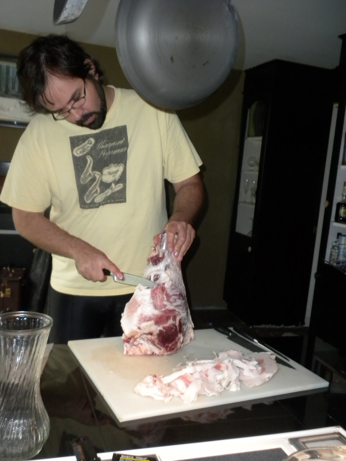 we managed to get 80%+ of everything done on saturday, thank goodness! matt spent a bit slicing and dicing the mangalitza pork leg.